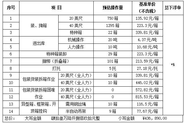(二)表中所列項目為現行港口中轉貨物種類和作業工藝,如出現表中未列項目或因新工藝、新材料、新設備造成作業效率提升或因發包人經營發生變化造成所需勞務人數減少。發包人屆時對相應作業項目重新測算勞務單價,承包人不得向發包人主張任何賠償或補充責任,并在收到發包人通知后10日內與發包人訂立補充協議。